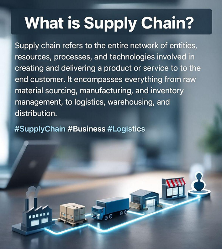 The supply chain is the backbone of every successful business operation. It represents the complete journey of a product from sourcing raw materials to manufacturing, transportation, warehousing, retail, and finally reaching the customer.